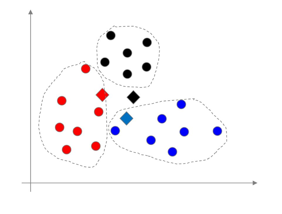 - k값을 정하는 문제와 초기 군집중심을 잡는 문제가 open problem (np 문제)