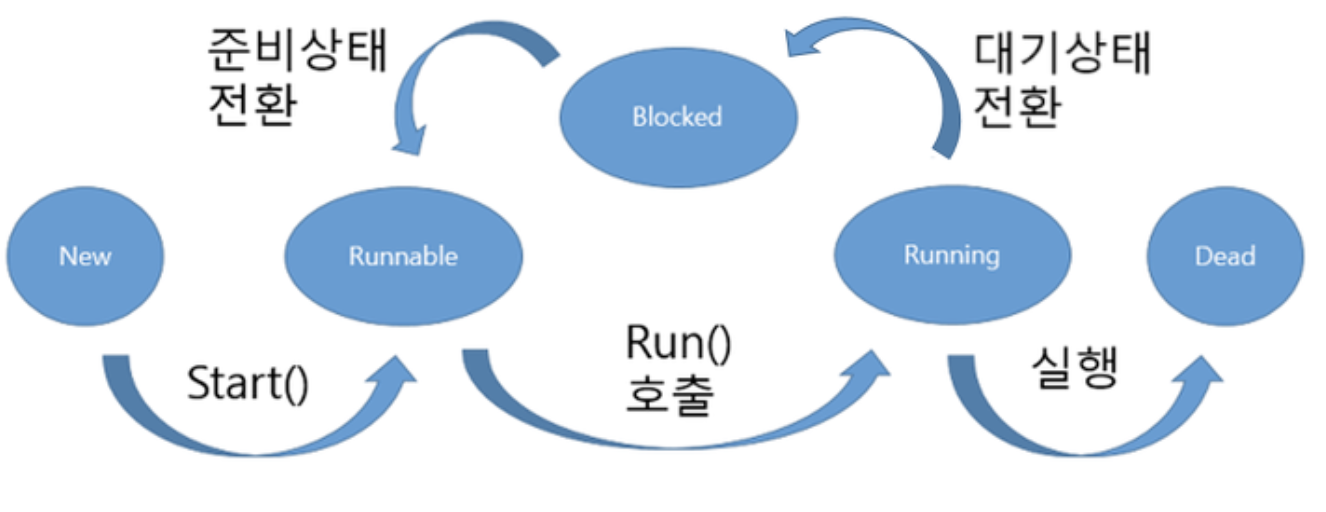 - Dead : 종료 상태로 Thread가 모두 실행되고 난 후 완료 상태를 말한다. (Done 상태라고도 한다)
