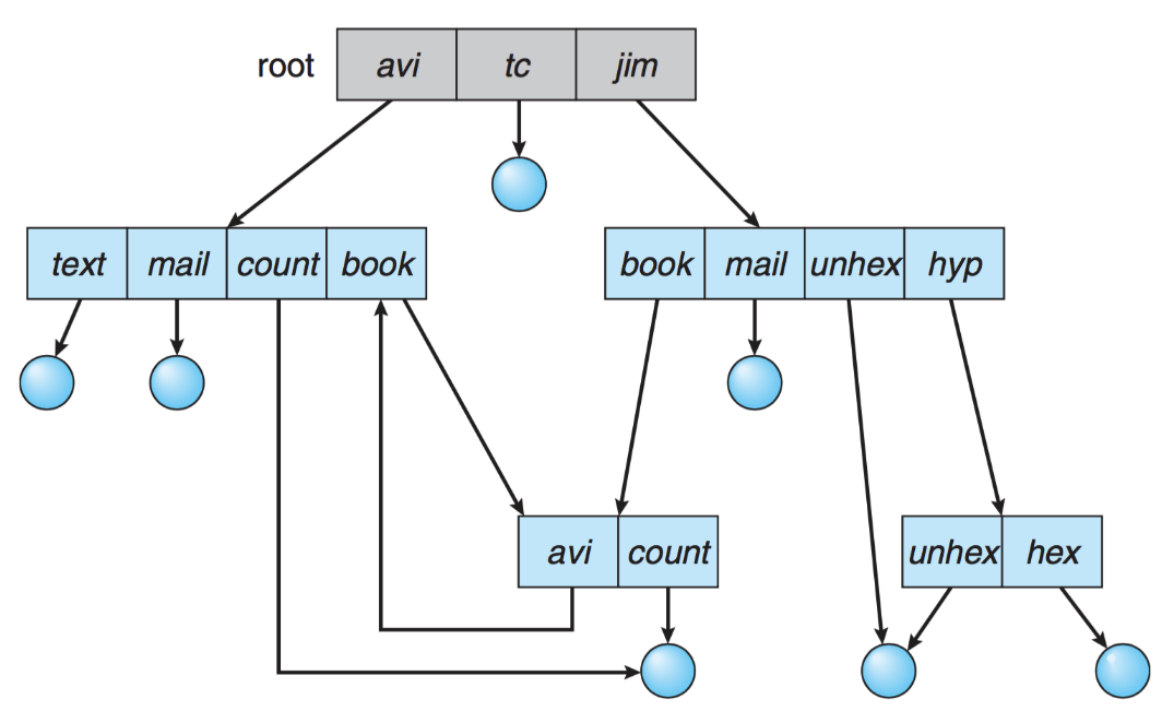 그래프 디렉토리 구조는 순환이 발생하지 않도록 하는 그래프의 특징을 이용하여 하위 디렉토리가 아닌 파일에 대한 링크만 허용하거나,