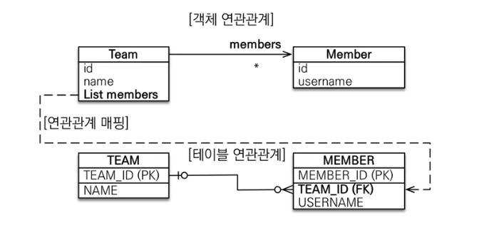 객체와 테이블의 차이 때문에 반대편 테이블의 외래키를 관리하는 특이한 구조