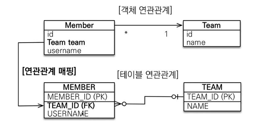 주 객체가 대상 객체의 참조를 갖는것 처럼 주 테이블에 외래키를 두고 대상 테이블을 찾는다 <- 객체지향적으로 개발, JPA 매핑 편리
