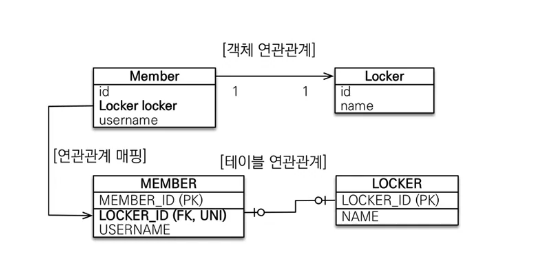 - 테이블은 외래 키 하나로 두 테이블이 연관관계를 맺는다.